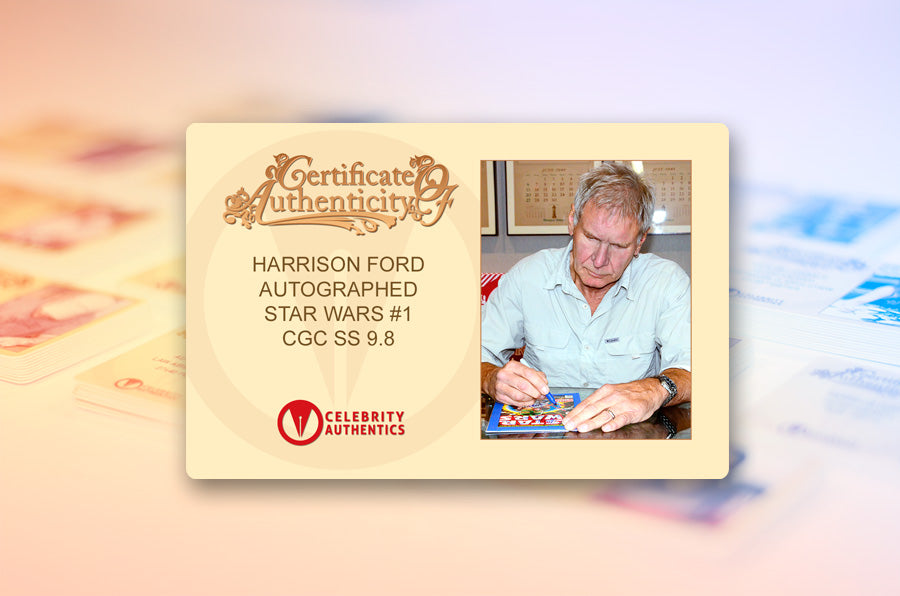 Additionally, every Celebrity Authentics item is accompanied by our industry defining Certificate of Authenticity (COA). Making a perfect display piece itself, our COA denotes the product title and features an image of the Talent signing. This photographic proof is just one more reason why Celebrity Authentics products have seen a remarkable increase in value and demand.